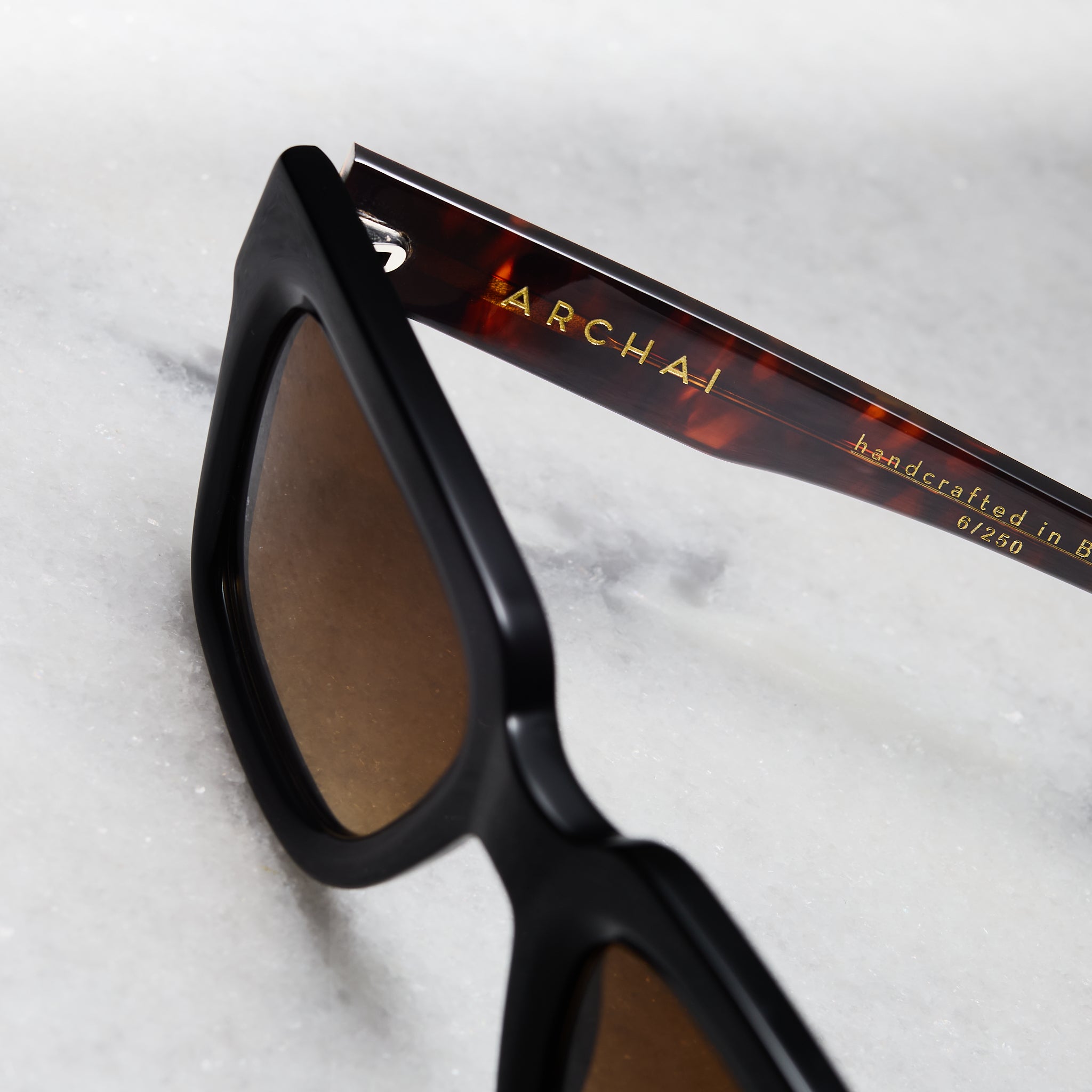 Utilizamos acetato italiano na produção de todos nossos óculos. Cores únicas e qualidade especial fazem da Mazzucchelli o padrão de luxo da nossa indústria.